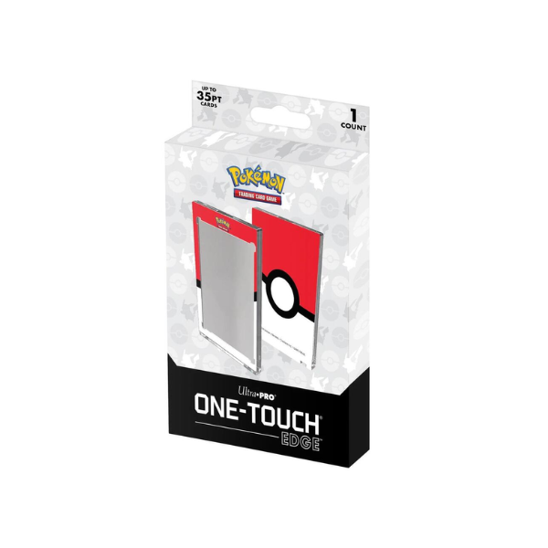 The ONE-TOUCH Edge combines the premium protection you expect from every ONE-TOUCH card holder with a full-color, printed art border for added style! Designed as the final destination for your collectible trading cards, two-piece ONE-TOUCH holders are uniquely designed with slide-in hinges and magnetic closure so you'll never have to use a screwdriver again. This ONE-TOUCH Edge features a printed Poké Ball design, perfect for showcasing your favorite Pokémon TCG cards. The holder uses UV-blocking additives to protect your card from harmful UV rays and is made with non-PVC materials to provide acid-free protection - ensuring your valuable hit retains its condition while under the display. This model can hold standard size Pokémon cards (2.5 in. x 3.5 in.) up to 35pt in thickness. (Card not included)